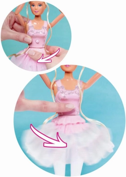 La muñeca Steffi Love – bailarina danzante lleva la elegancia del ballet a la habitación infantil. Un top con detalles brillantes y una falda tutú rosa crean un look encantador, mientras que el botón en forma de rosa activa la rotación de la falda para un efecto de actuación real.