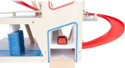 El lavadero con cepillos giratorios aporta realismo al juego, mientras que el vallado de goma en las plantas evita que se caigan los cochecitos y aumenta la seguridad durante la conducción.