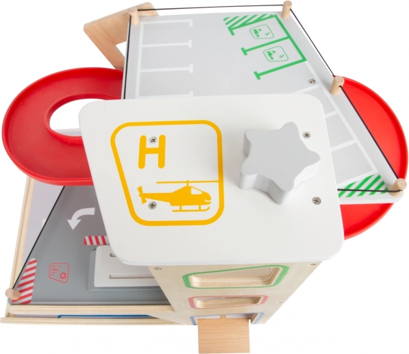 Este aparcamiento prémium de contrachapado de madera de alta calidad ofrece tres plantas bien equipadas conectadas por un ascensor funcional y dos rampas fluidas. Los niños pueden aparcar, repostar, cargar, lavar y reparar: todo en un solo lugar, con elementos realistas y una gran jugabilidad.