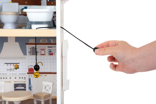 Detalles como el timbre funcional, las puertas correderas, las ventanas abatibles y la mesilla de noche con cajones aportan realismo e interactividad al juego. El mobiliario con elementos de madera y plástico está incluido, lo que intensifica la experiencia de juego auténtica.