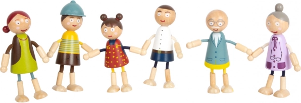 Con estas figuras de madera de Small Foot puedes dar vida fácilmente a tu casa de muñecas. Las figuras están hechas de madera de calidad y tienen partes flexibles, lo que permite colocarlas en diferentes posiciones. El set incluye mamá, papá, abuela, abuelo, hermano y hermana, todos perfectamente adaptados a las manos de los niños.