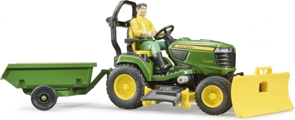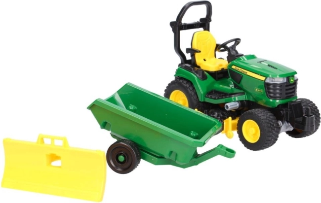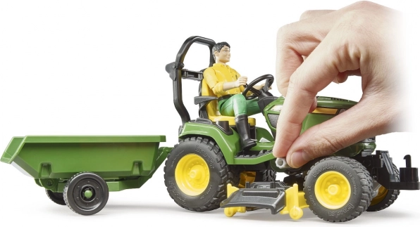 Amplía tu mundo de juego con el detallado tractor de jardín JOHN DEERE X949 de la marca BRUDER. Gracias a la hoja frontal funcional, la unidad de corte y el remolque basculante, los niños pueden imitar fácilmente los trabajos reales del jardín: desde empujar hojas hasta “cortar” el césped y transportar materiales.