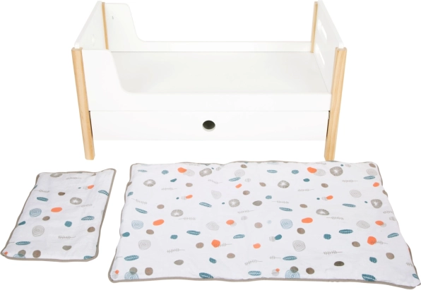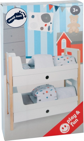 El paquete incluye ropa de cama en colores neutros y edredones de gran tamaño, que alojan cómodamente muñecas o peluches de hasta 46 cm. Los cajones debajo de cada cama ofrecen un almacenamiento inteligente para ropita y pequeños accesorios. Un complemento ideal para el dormitorio infantil y para un rincón de muñecas con estilo dentro de la colección Little Button.