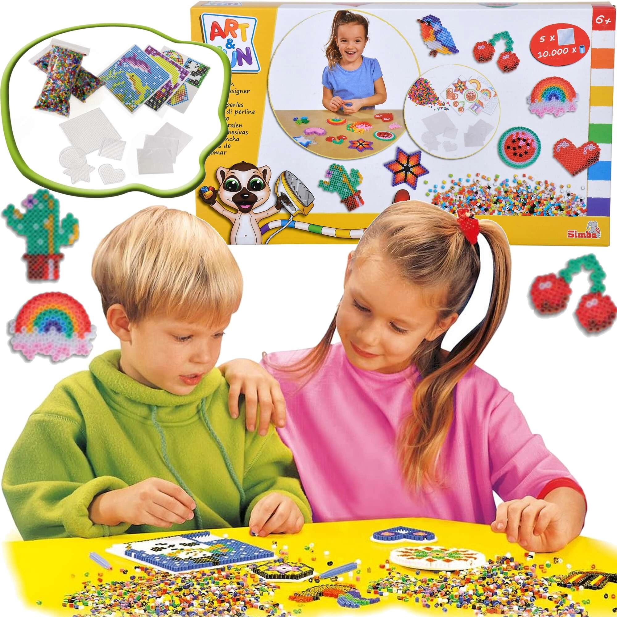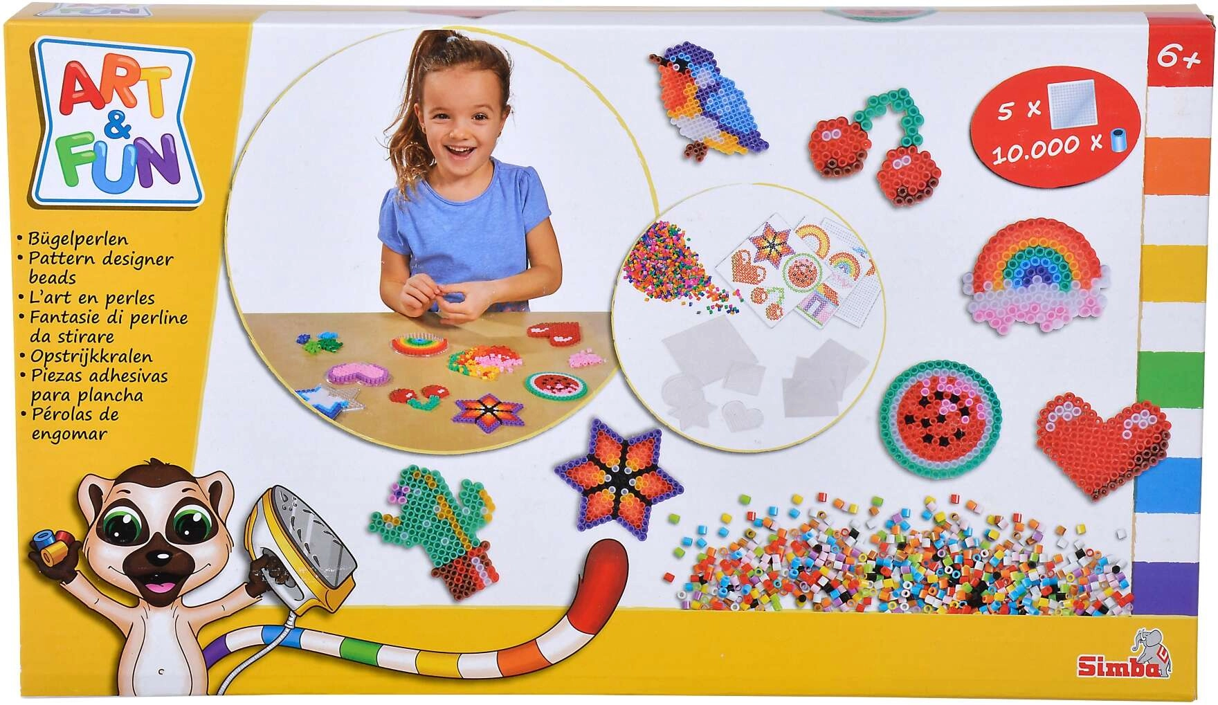 Descubre el mundo de la creación pixelada con el set de cuentas termofusibles ART & FUN de SIMBA. El paquete incluye 10 000 cuentas de colores y 5 bases reutilizables donde podrás componer cualquier motivo. Tras cubrir con papel de horno y plancharlo por un adulto, las cuentas se fusionan y endurecen formando una decoración permanente.