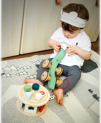 Te presentamos un adorable caracol de madera con cuerda que no solo entretiene, sino que también ayuda al desarrollo de tu hijo. Gracias a su ligereza y a sus ruedas de giro suave, es ideal para los niños que comienzan a caminar y apoya su coordinación y equilibrio. Además, el caracol funciona como clasificador con cinco formas diferentes, lo que estimula las capacidades cognitivas y la motricidad fina.