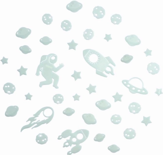 Con este set espacial crearás fácilmente un cielo nocturno mágico directamente en la habitación infantil. Solo hay que cargarlas con luz y su efecto fosforescente ofrecerá un brillo suave que estimula la imaginación y favorece un descanso tranquilo.