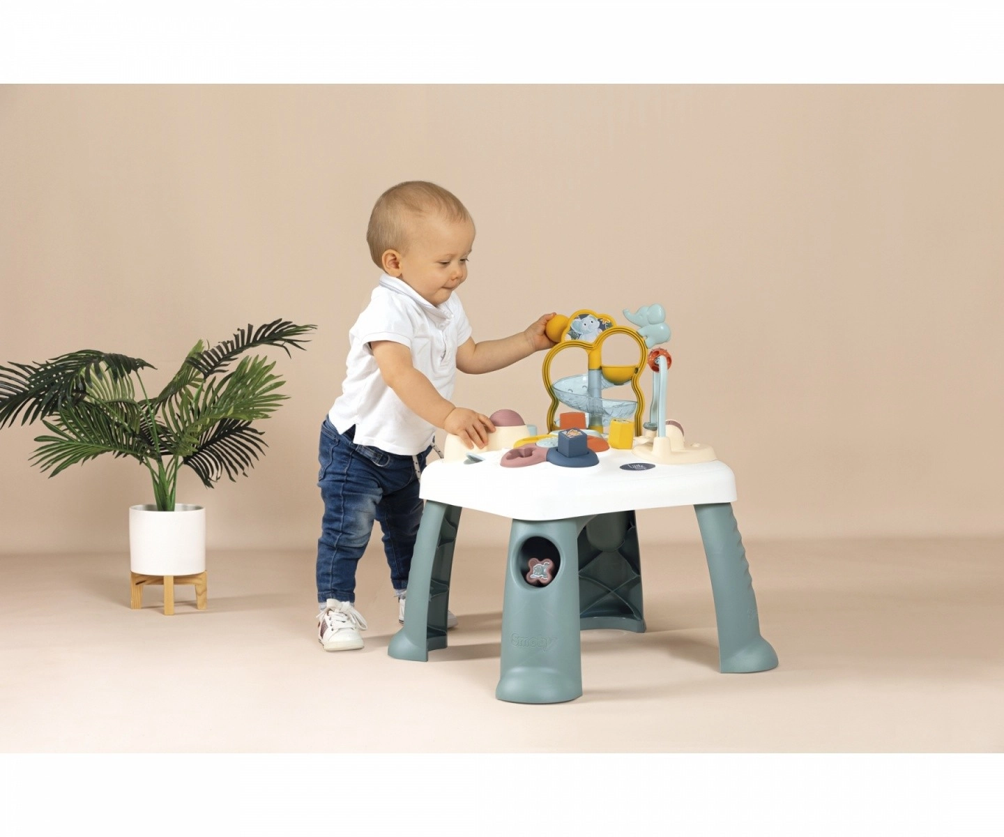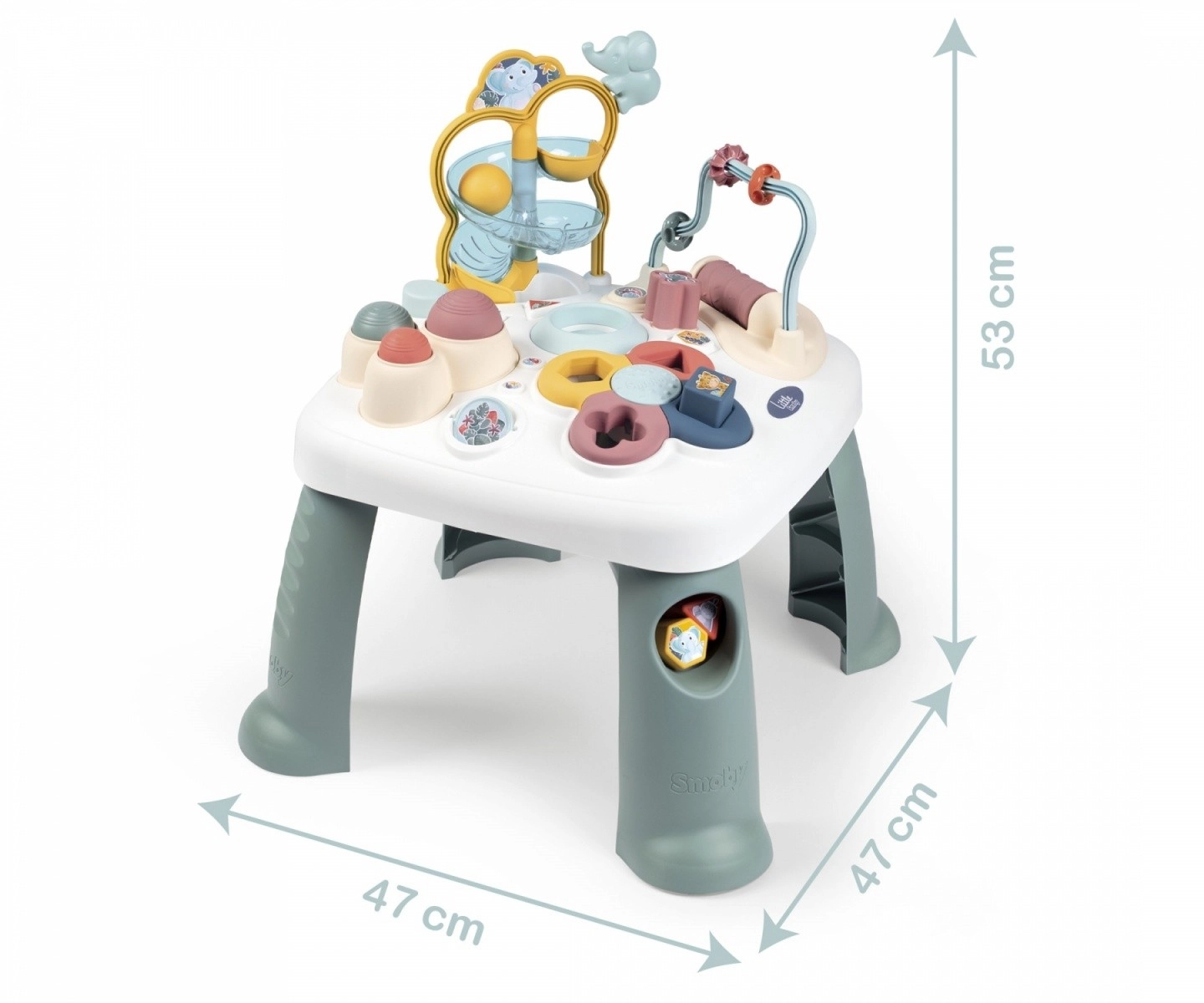 Little Smoby es una colección de juguetes del reconocido fabricante francés Smoby, que desde 1924 ofrece juguetes duraderos que favorecen el desarrollo saludable de los niños. Esta colección destaca por su paleta de colores suaves, con un efecto calmante sobre el sistema nervioso de los más pequeños. La mesita interactiva ofrece numerosas funciones para experiencias de juego emocionantes. El asiento ergonómico proporciona apoyo y permite al niño observar su entorno. Su diseño atractivo y colores modernos encajan en cualquier habitación infantil. Las formas redondeadas y las distintas posibilidades de juego ofrecen un entorno seguro y relajante para jugar.