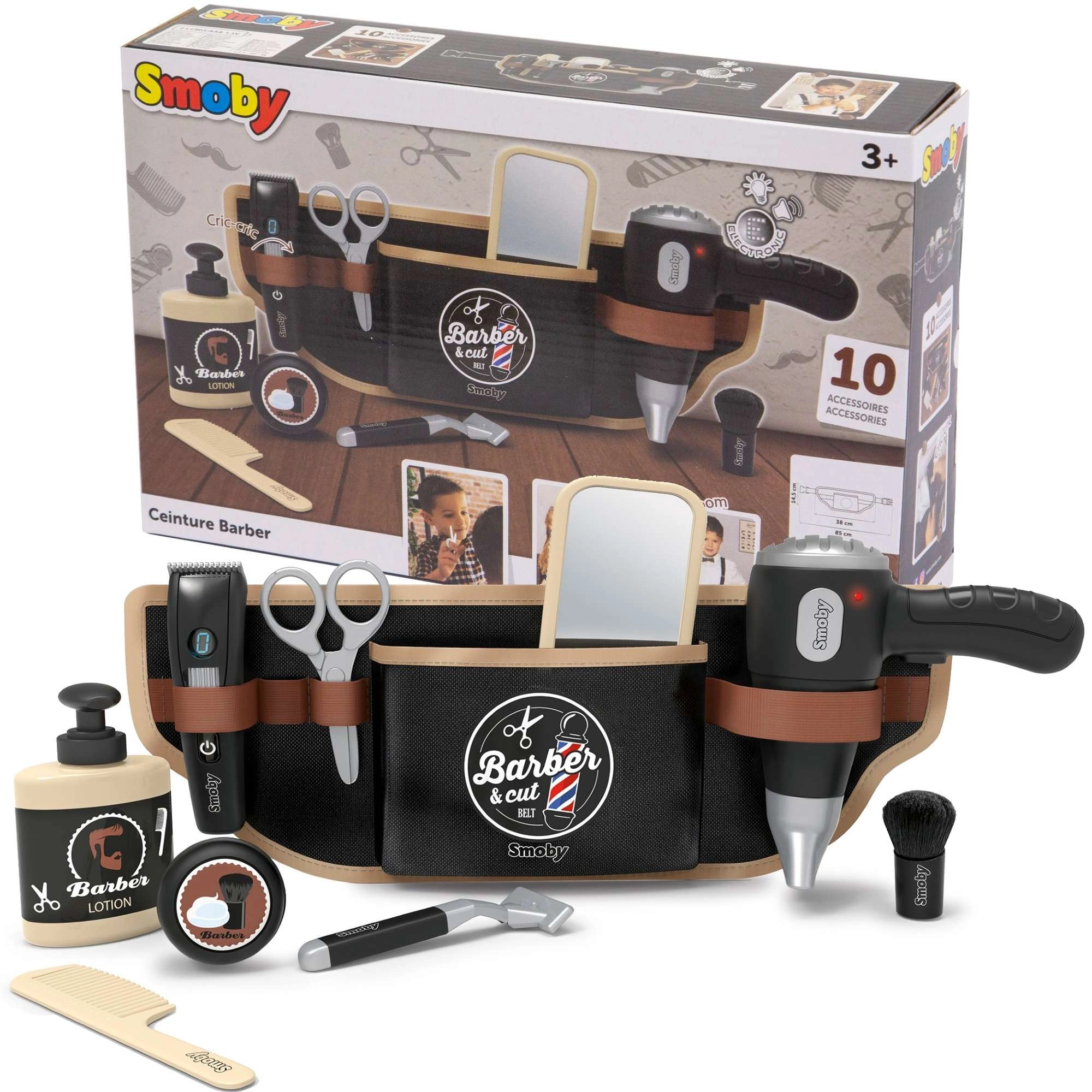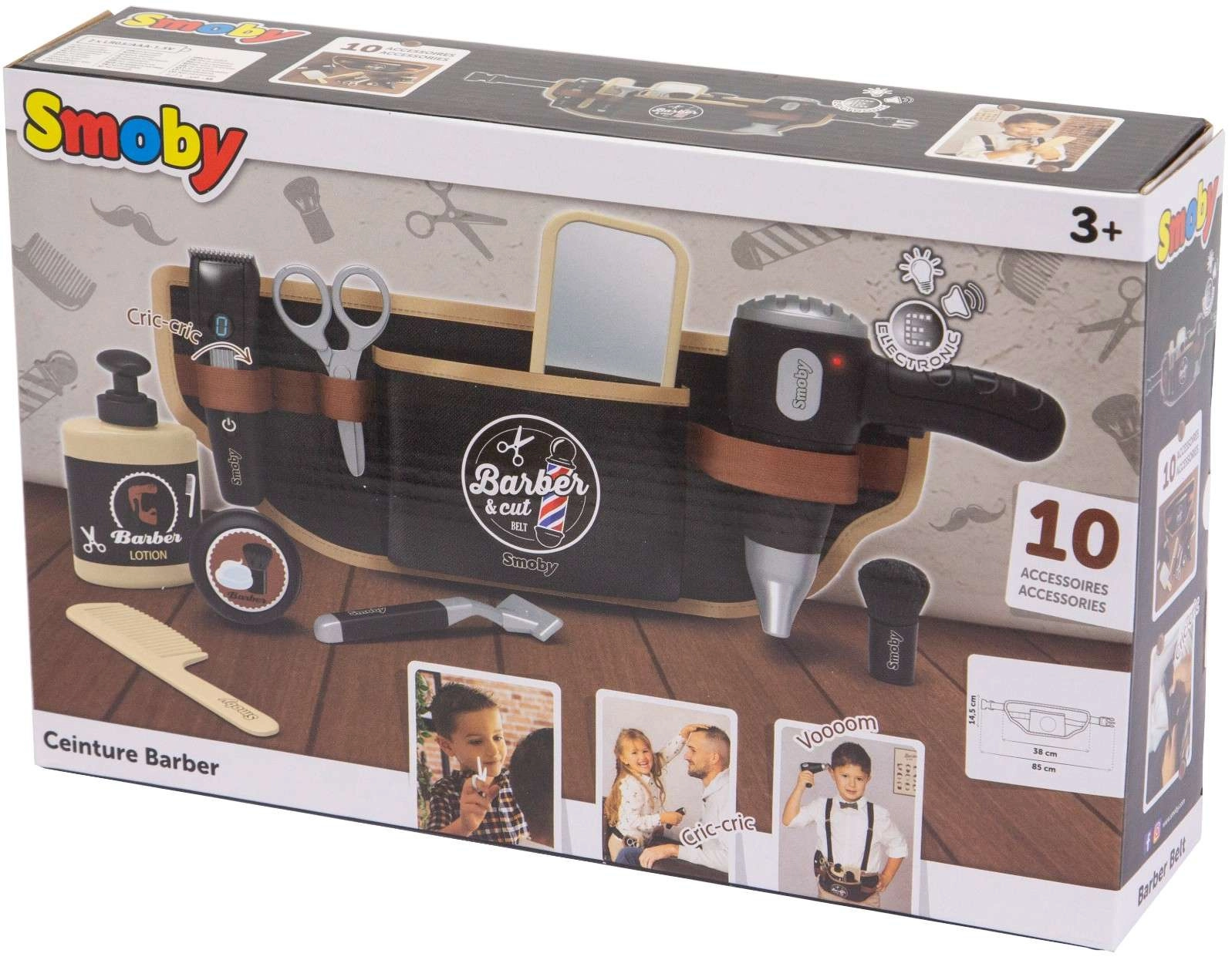 Descubre el juego creativo con el cinturón de peluquería Smoby myBeauty para pequeños estilistas. El cinturón se lleva cómodamente en la cintura y mantiene todas las herramientas a mano. Incluye 10 accesorios, entre ellos un secador interactivo con sonidos realistas, tijeras, peine, espejo y más. Ideal para el desarrollo de la imaginación, la motricidad fina y el juego de roles a partir de 3 años.