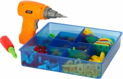 Divertido juego educativo de construcción para pequeños manitas con taladro de juguete eléctrico, tornillos y tablero de mosaico. Los niños ejercitan la motricidad fina, la creatividad y el pensamiento técnico al montar patrones de colores y sus propias construcciones. El práctico maletín facilita el transporte y el completo set de 261 piezas garantiza horas de gran diversión.
