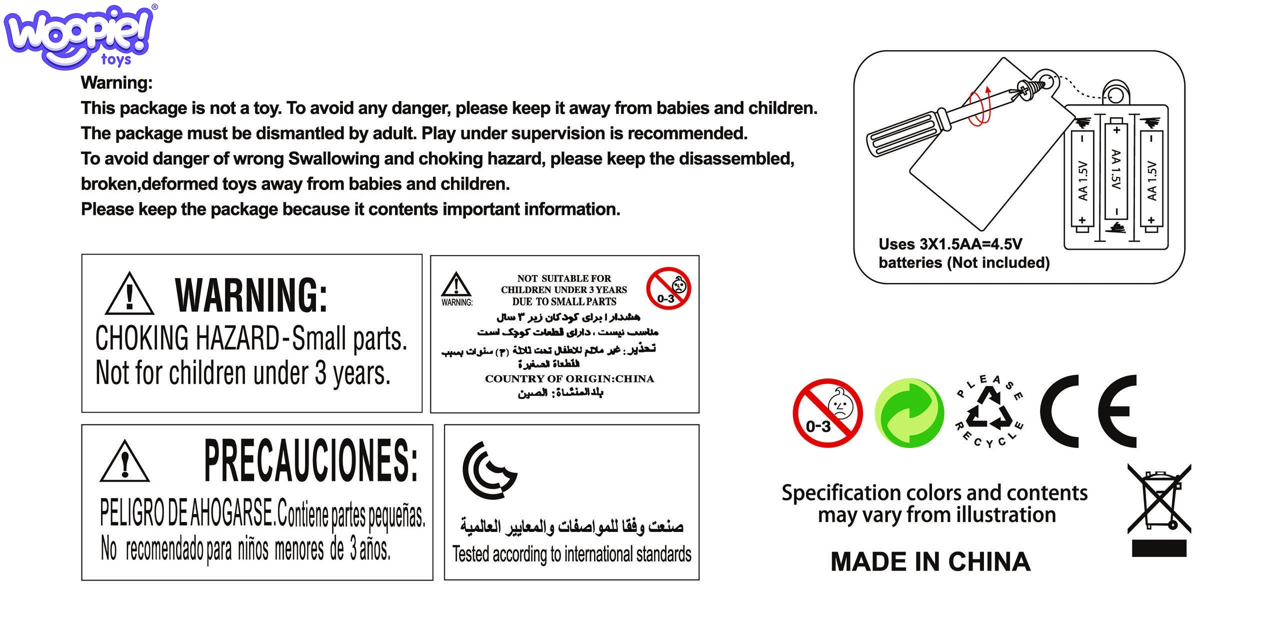 Los productos no están destinados al consumo. Requiere el uso de tres pilas AA (no incluidas).