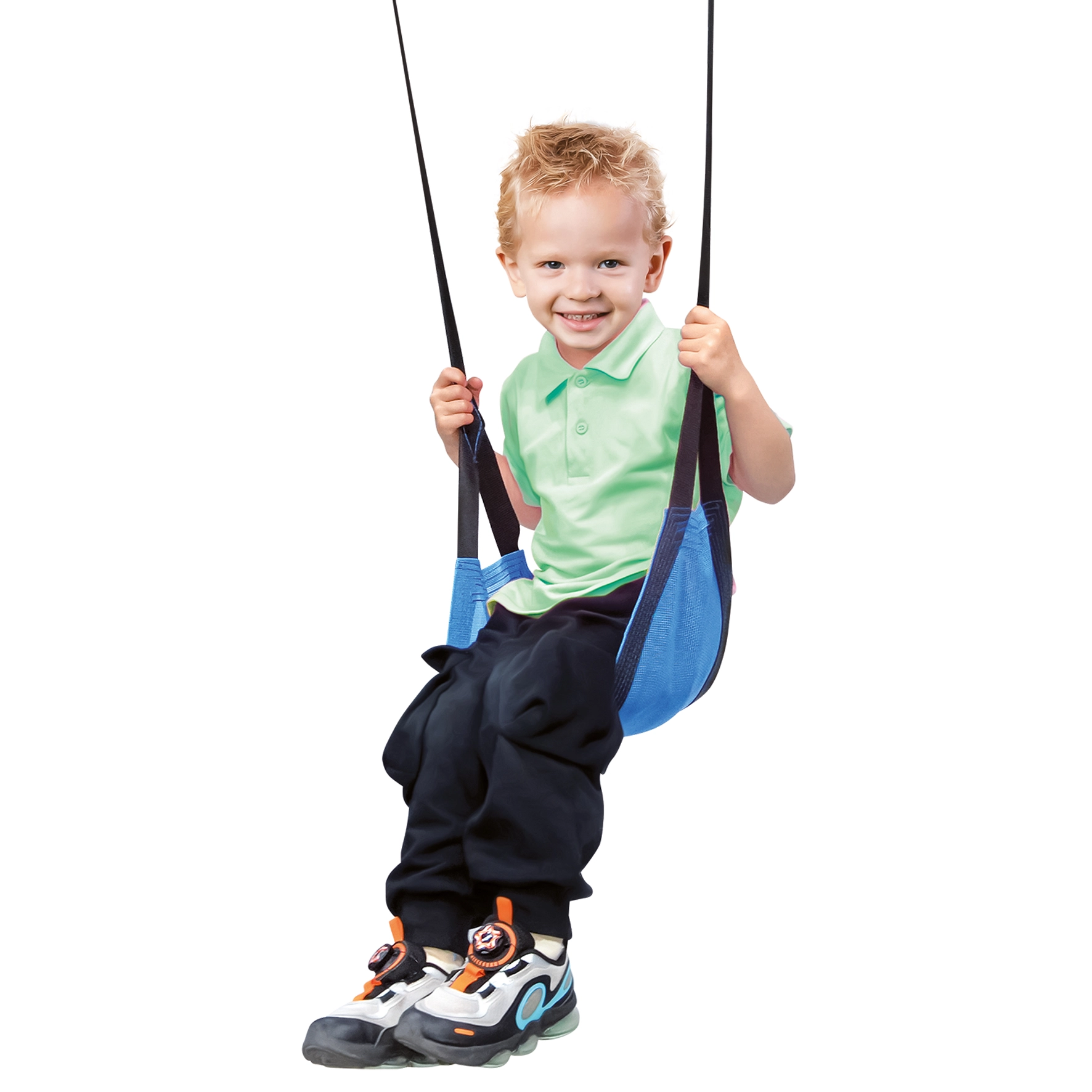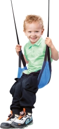 El columpio infantil colgante Bino en color azul es una opción ideal para el jardín, la terraza, el porche, el parque e incluso para acampar. Gracias a la combinación de nailon y poliéster, el asiento es firme, transpirable y cómodo, mientras que el acabado antideslizante proporciona una sentada más segura. Su diseño compacto permite plegarlo y transportarlo con facilidad.