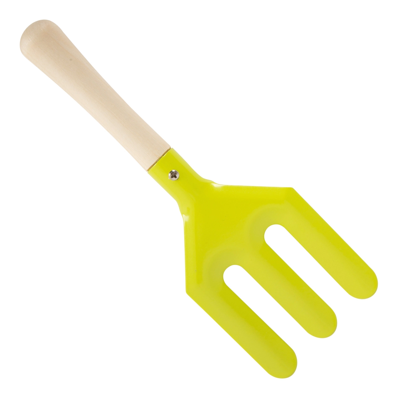 Herramientas ligeras pero robustas —pala, rastrillo, palita y horquilla— diseñadas para manos pequeñas y para trabajar de verdad en el jardín.