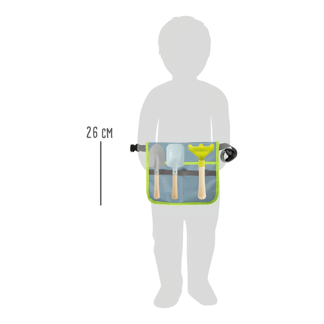 Este ingenioso set combina una riñonera cómoda con herramientas prácticas para que los niños puedan plantar, airear y transportar tierra con facilidad. Herramientas metálicas con bordes lisos y mangos de madera adaptados a manos pequeñas, resistentes incluso al ritmo entusiasta de los niños. La riñonera con cinturón ajustable mantiene las herramientas a mano y permite un movimiento libre y seguro.