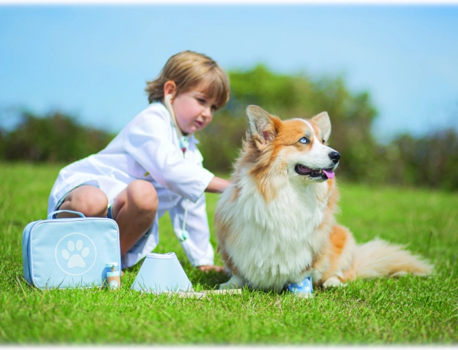 Los niños aprenden a cuidar a sus “pacientes”, desarrollan habilidades de comunicación y entrenan la imaginación en el papel de un pequeño veterinario en casa y de viaje.
