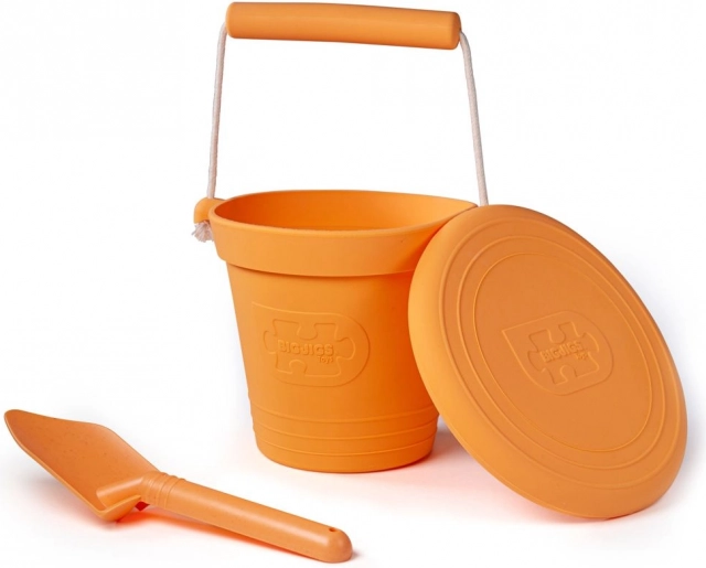 Pala ecológica naranja de Bigjigs Toys, fabricada con fibras de trigo sostenibles que recuerdan al plástico, pero son más respetuosas con el planeta. Se limpia fácilmente y, gracias a su tamaño compacto, es ideal para la playa o el jardín.