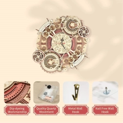 Descubre el arte de la relojería con nuestro rompecabezas mecánico 3D de madera. Este modelo destaca por su complejidad y acabado preciso, que atrae la atención de todos los aficionados al bricolaje y al diseño steampunk. Ideal para colgar en la pared, este modelo ofrece un uso estético y funcional gracias al reloj alimentado por electricidad y al calendario decorativo.
