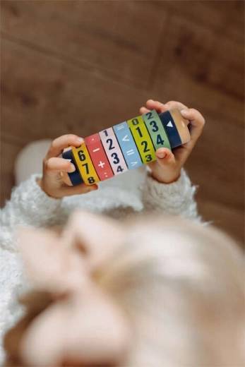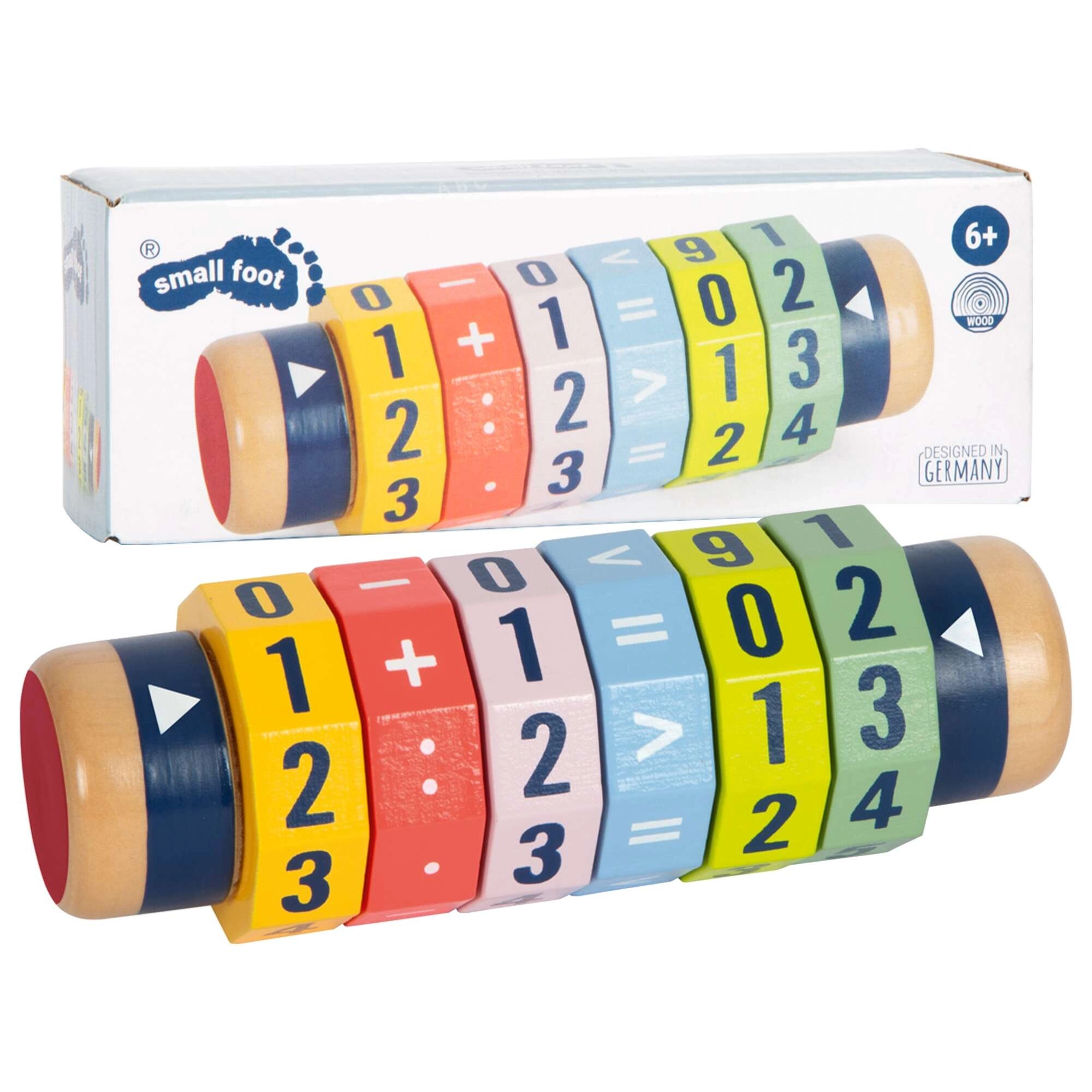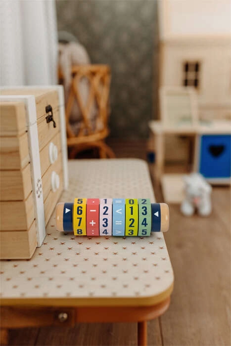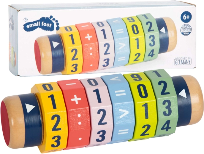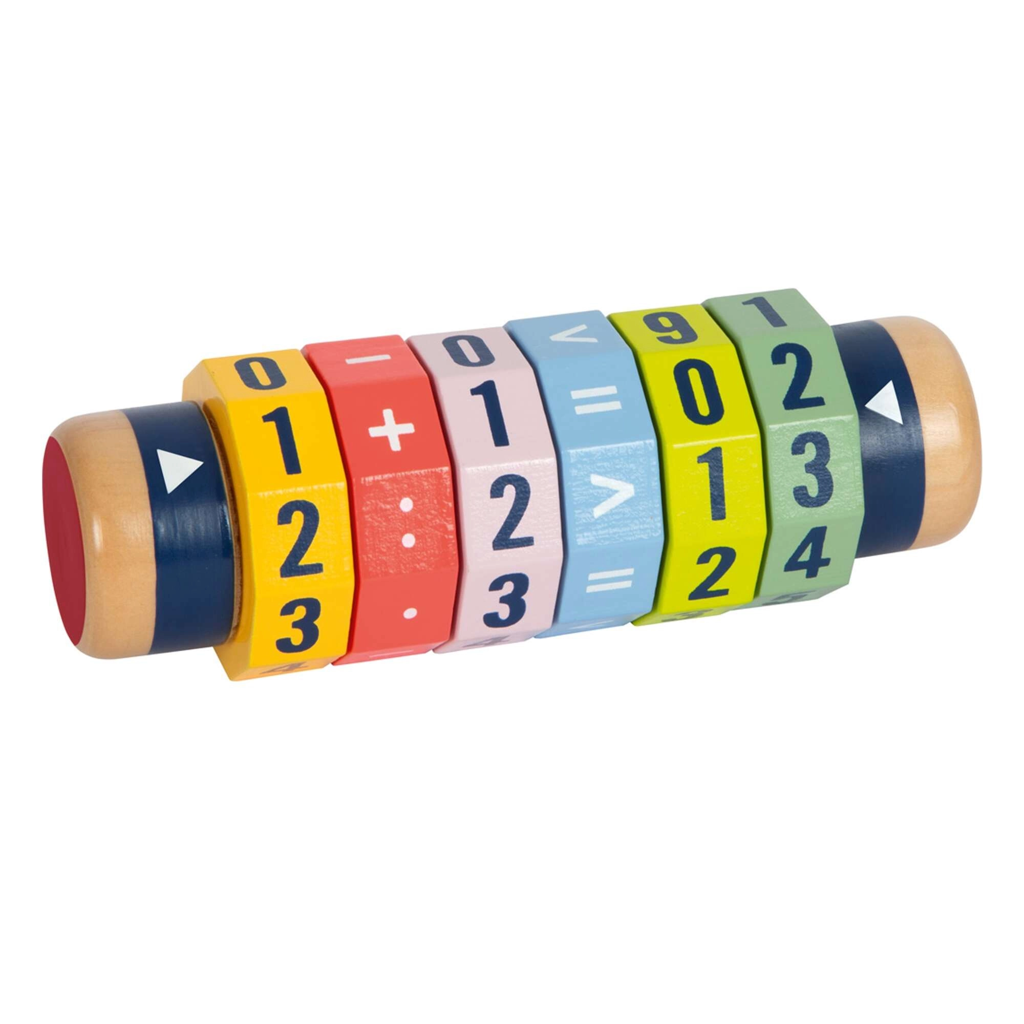 Descubre una forma divertida de aprender matemáticas. El cilindro de madera con seis anillos giratorios permite a los niños crear ecuaciones sencillas y más complejas, así como realizar comparaciones numéricas. Gracias a los colores vivos y a los números destacados, los niños aprenden de manera lúdica y refuerzan la motricidad fina y la concentración.