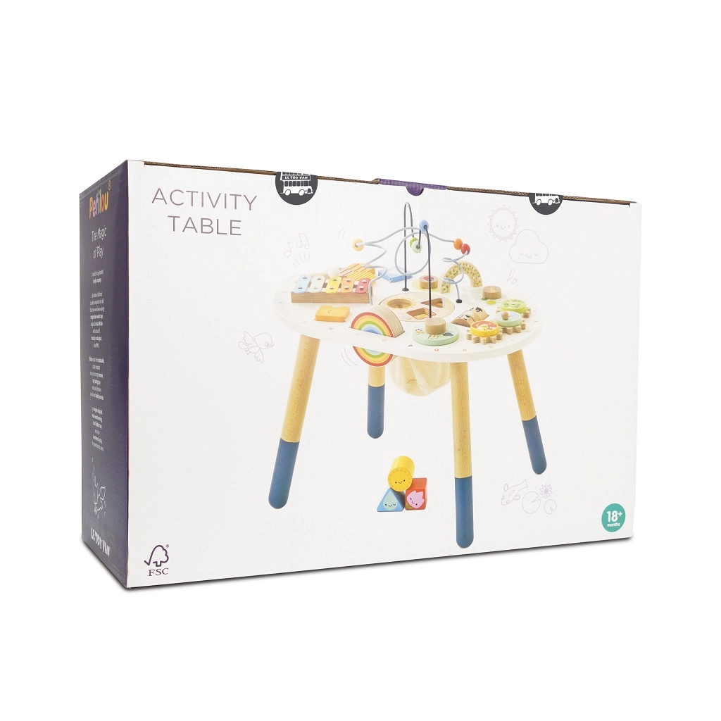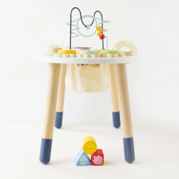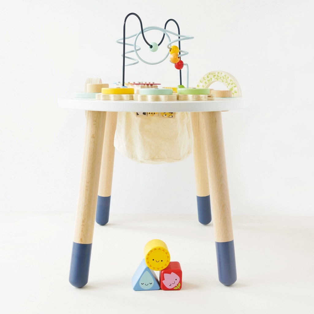 Descubra la versátil mesa de madera LE TOY VAN de la colección PETILOU, que desarrolla la motricidad fina, la coordinación y los sentidos de los más pequeños. Incluye laberinto de cuentas, xilófono, encaje de formas, engranajes, elementos giratorios y deslizantes y otras actividades ingeniosas. Fabricada con madera certificada FSC®, acabada a mano con pinturas ecológicas no tóxicas y diseñada para un juego prolongado, seguro y significativo.