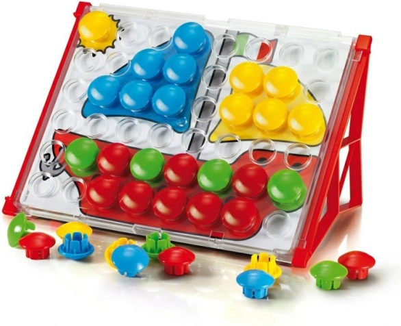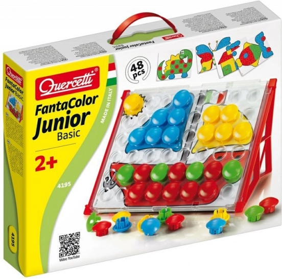 Fantacolor Junior Basic es un juguete didáctico ideal para preescolares. Los niños insertan grandes botones de colores en los orificios siguiendo las plantillas o su propia imaginación y, de forma divertida, entrenan la coordinación mano-ojo, la diferenciación de colores y el pensamiento lógico. Gracias a su robusta fabricación y a sus dimensiones seguras, el mosaico es adecuado desde los 2 años.