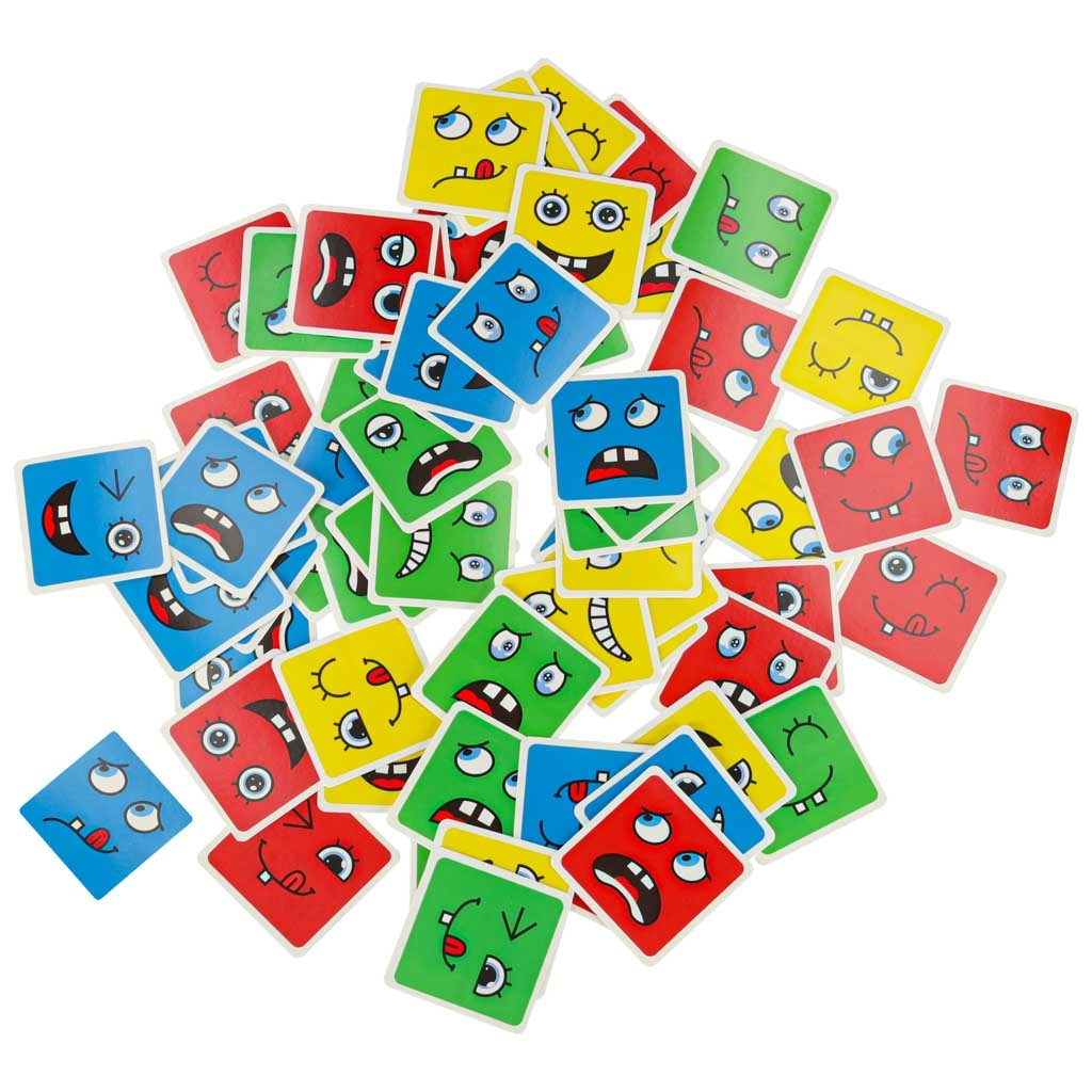 Roba una carta y compón lo más rápido posible la misma cara. Ideal para noches en familia, educación preescolar y el desarrollo de habilidades socioemocionales.