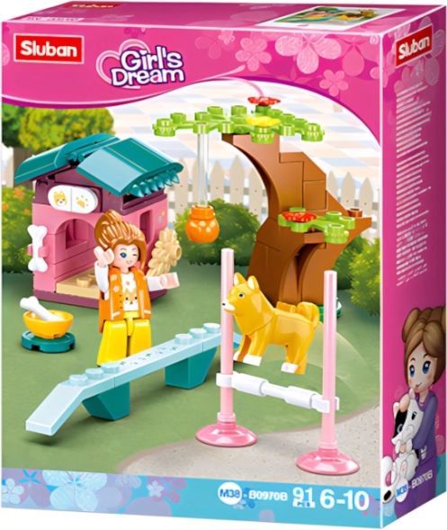 El set de construcción SLUBAN GIRLS DREAM campo de entrenamiento para perritos aporta a los niños a partir de 6 años mucha diversión y aprendizaje. Gracias a la figura móvil y a los elementos temáticos del circuito de entrenamiento, los pequeños constructores pueden crear sus propias historias y pistas de entrenamiento para perritos. El plástico ABS de calidad garantiza una larga vida útil y un juego seguro.