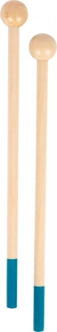 Incluye resistentes baquetas de madera maciza que se adaptan perfectamente a la mano infantil y soportan el uso diario.