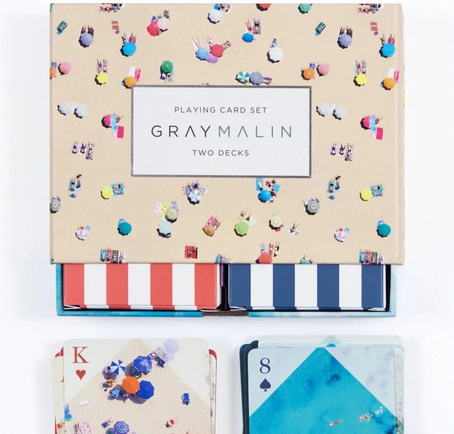 Disfruta de una experiencia única con este set con estilo, que combina elementos tradicionales del juego con encantadoras tomas aéreas de playas. El set incluye dos barajas de 54 cartas, sumando un total de 108 cartas.