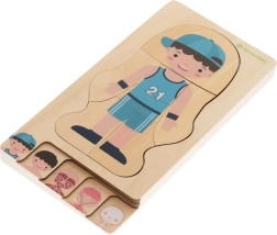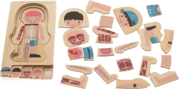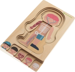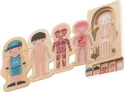 Este rompecabezas de madera único está diseñado para fomentar la creatividad, el pensamiento lógico y las habilidades manuales de los niños. Con cada capa, los niños aprenden más sobre la estructura del cuerpo humano.