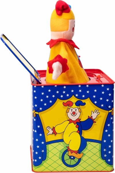 Gira la manivela y observa cómo el payaso salta. Este juguete es ideal para desarrollar la motricidad fina.