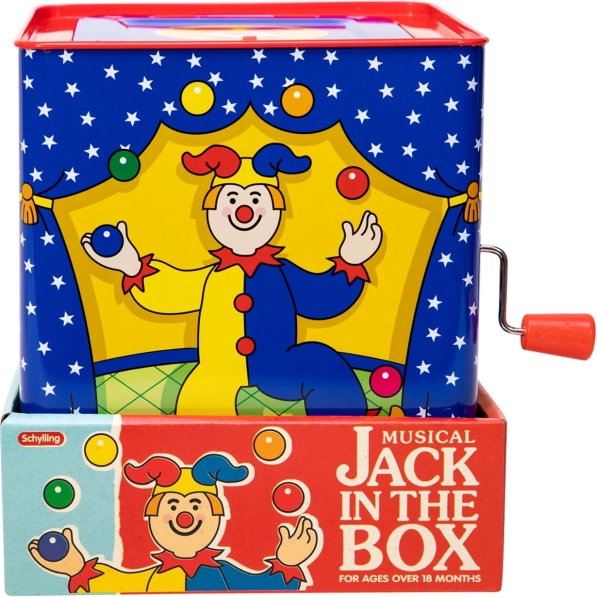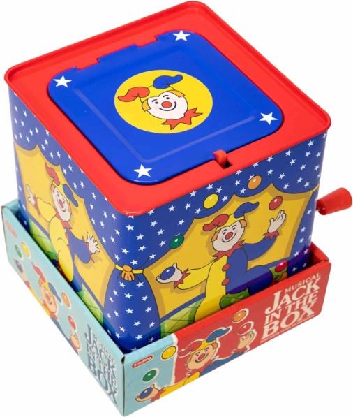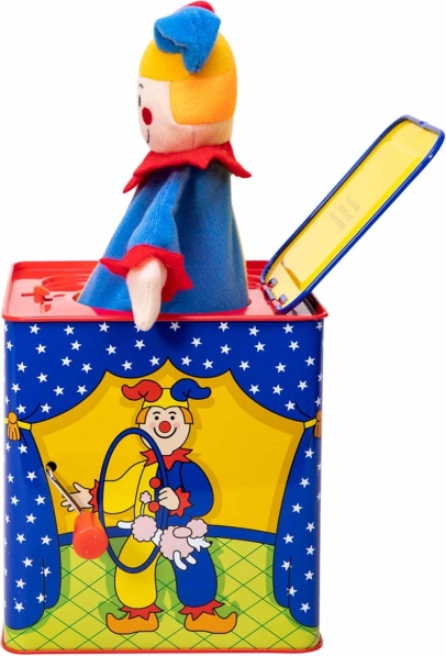 La caja de música con payaso es un juguete atemporal fabricado en hojalata con un bonito diseño que garantiza horas de diversión. Simplemente gira la manivela y escucha la melodía de la conocida canción “Pop Goes The Weasel” hasta que aparezca el colorido payaso.
