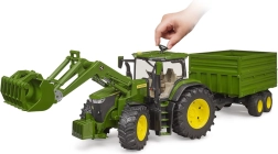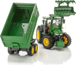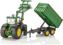 El tractor se complementa con un remolque tándem que cuenta con función de volcado y laterales desmontables, lo que permite un traslado y carga sencillos de diversos objetos. A los niños les encantarán el nivel de detalle y las posibilidades que ofrece este modelo.