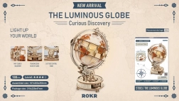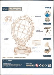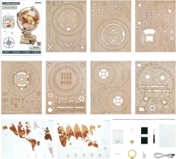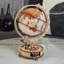 Descubre la magia del mundo con un modelo decorativo y funcional: un globo terráqueo de madera con iluminación LED que montarás tú mismo. Gracias al sistema de engranajes, el globo gira suavemente; incluye una lupa mecánica para leer detalles y una iluminación LED de bajo consumo alimentada por microUSB/USB-A. El kit, fabricado en contrachapado de alta calidad, ofrece una alta dificultad, pone a prueba la paciencia y la concentración, y tras el montaje se convierte en una elegante lámpara de noche de estilo retro.