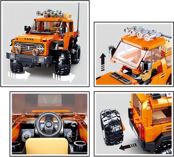 Descubre la diversión de construir con un vehículo todoterreno inspirado en los SUV americanos. El modelo en combinación naranja y negro, con ruedas robustas, portaequipajes en el techo y una parrilla frontal detallada, es ideal tanto para escenas de acción como para exhibir en una estantería. Gracias al resistente plástico ABS, el set es duradero y seguro.