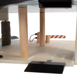 Descubre un versátil aparcamiento de madera de tres niveles con ascensor funcional y rampas suaves para horas de juego creativo. Incluye 2 cochecitos, estación de servicio y de carga, rampa elevadora y lavadero con cepillos realistas. Las barreras mecánicas en cada nivel y el vallado de goma para una conducción segura aportan dinamismo al juego. La combinación resistente de contrachapado de madera, madera maciza y plástico seguro garantiza una larga durabilidad.