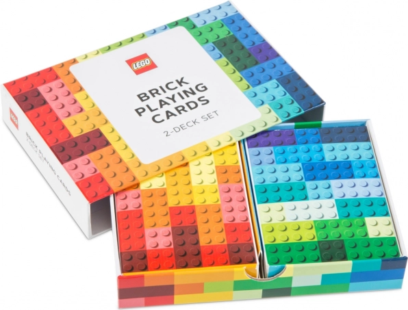Un elegante juego de naipes con licencia de LEGO que incluye 2 barajas independientes (en total 108 cartas) aptas para canasta, póker y otros juegos de cartas. Destacan por sus colores vibrantes, motivos de bloques y minifiguras LEGO y una fabricación de calidad con materiales reciclados y sostenibles e impresión con tintas no tóxicas.