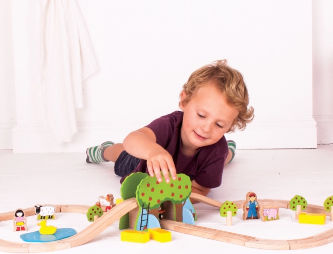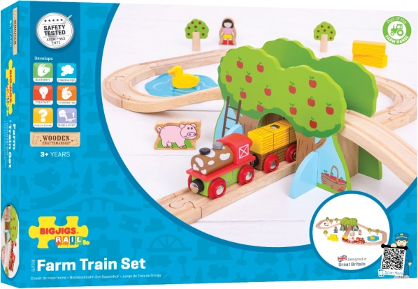 Descubre la magia de la granja con este ferrocarril de madera de Bigjigs Rail. Combina materiales naturales de calidad y obtenidos de forma responsable, que cumplen con las normas europeas de seguridad vigentes.