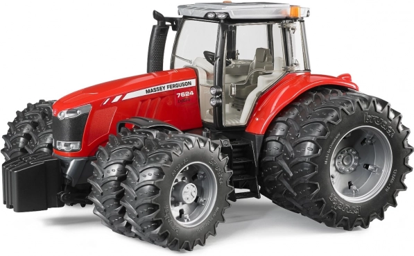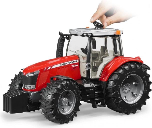 Este fiel modelo del tractor Massey Ferguson 7624 está fabricado en Alemania con materiales de alta calidad, lo que garantiza una larga duración y seguridad. El tractor ofrece una amplia funcionalidad gracias al capó del motor abatible, las puertas que se abren y la cabina acristalada.