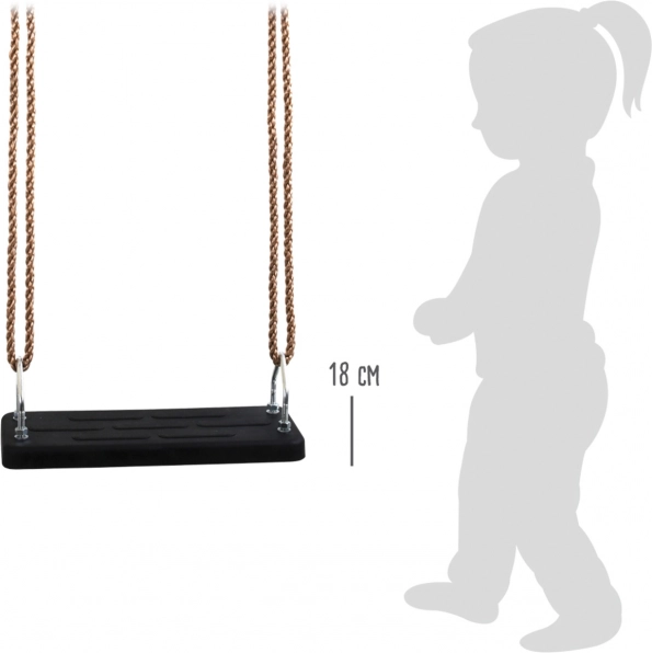 Este columpio universal de exterior SMALL FOOT está diseñado para disfrutar del movimiento a diario en el jardín o en el parque infantil. El asiento de goma rígida de 45 × 18 cm es cómodo, estable y, gracias a su textura, no resbala, ofreciendo seguridad al balancearse.