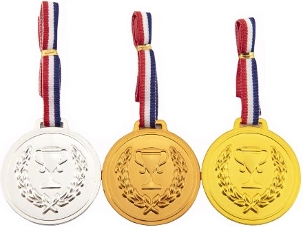 ¡Medallas para pequeños ganadores! Este juego de tres medallas de plástico con cordón es ideal para niños que participan en diversas competiciones y esperan una recompensa por su esfuerzo.