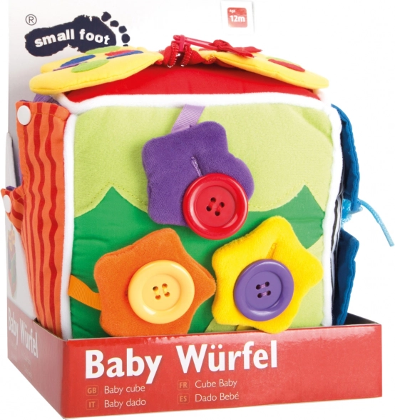 Cubo de actividades de peluche de Small Foot es el juguete ideal para desarrollar la motricidad fina en los niños. Incluye diferentes tipos de cierres como botones, cremalleras y cordones que fomentan la exploración táctil.