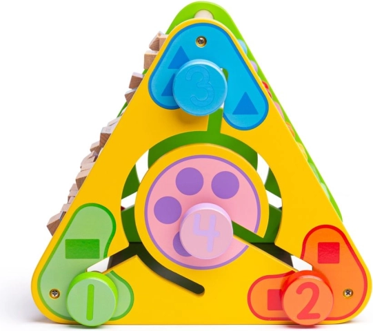Este triángulo activo de BIGJIGS BABY combina aprendizaje y juego en un conjunto compacto y resistente. Gracias a su fabricación sólida, ninguna pieza se pierde y los niños pueden explorar de forma segura los colores, las formas, los números y sus primeras palabras en inglés. Su diseño colorido capta la atención y favorece la concentración.