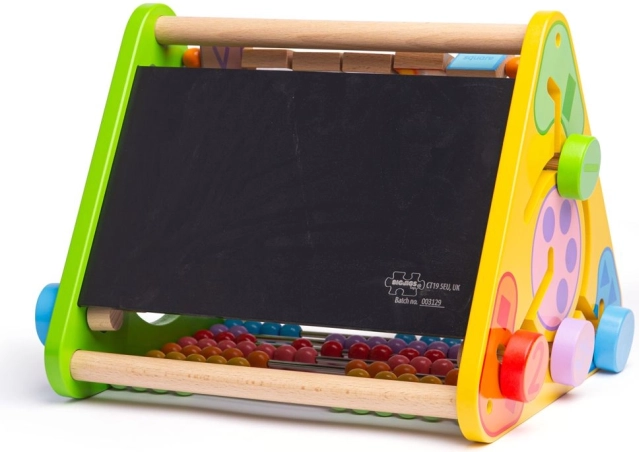 Descubre el colorido mundo del aprendizaje y la diversión con el triángulo de madera multifuncional BIGJIGS BABY. Ofrece hasta 5 actividades diferentes: ábaco, pizarra para dibujar, abecedario con imágenes en inglés, reconocimiento de colores y números y animales. Su estructura robusta sin piezas sueltas es ideal para casa y para viajes, y desarrolla la motricidad fina, la coordinación y las habilidades cognitivas.