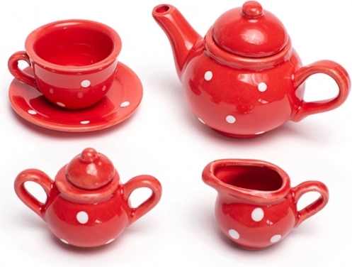 Organiza la merienda de té infantil perfecta con este encantador set en color rojo con lunares blancos. El conjunto incluye todo lo que los pequeños anfitriones necesitan: tetera, 4 tazas con platillos, azucarero y jarrita para leche. Tras jugar, todo se guarda fácilmente en el resistente maletín, por lo que el set es ideal también para llevar de viaje. Fabricado con materiales de calidad y conforme a las normas europeas de seguridad.