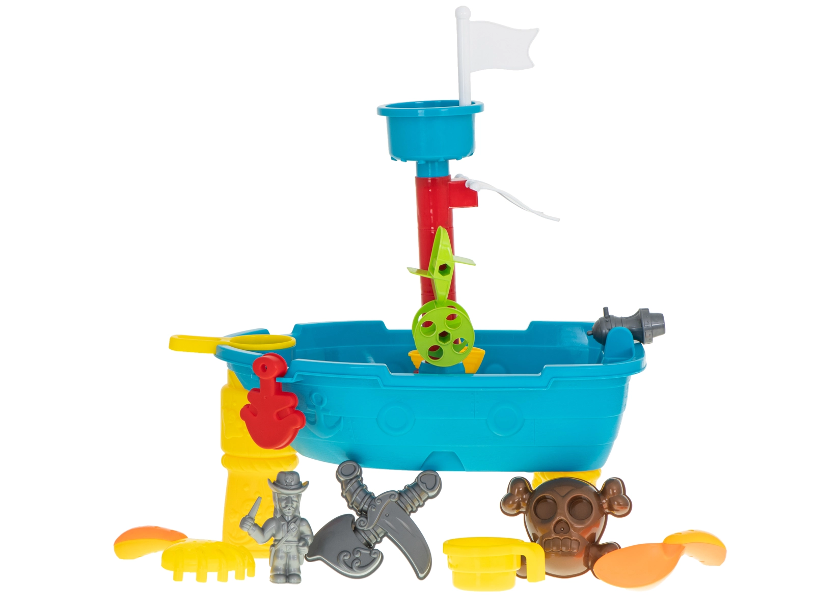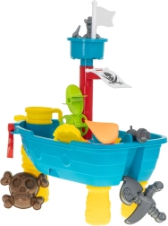 Presentamos la mesa de juego en forma de barco pirata, que convertirá cada juego en una emocionante aventura en mar abierto. Los niños disfrutarán no solo del juego con agua y arena, sino también de mucha imaginación e inspiración gracias a los ricos accesorios.