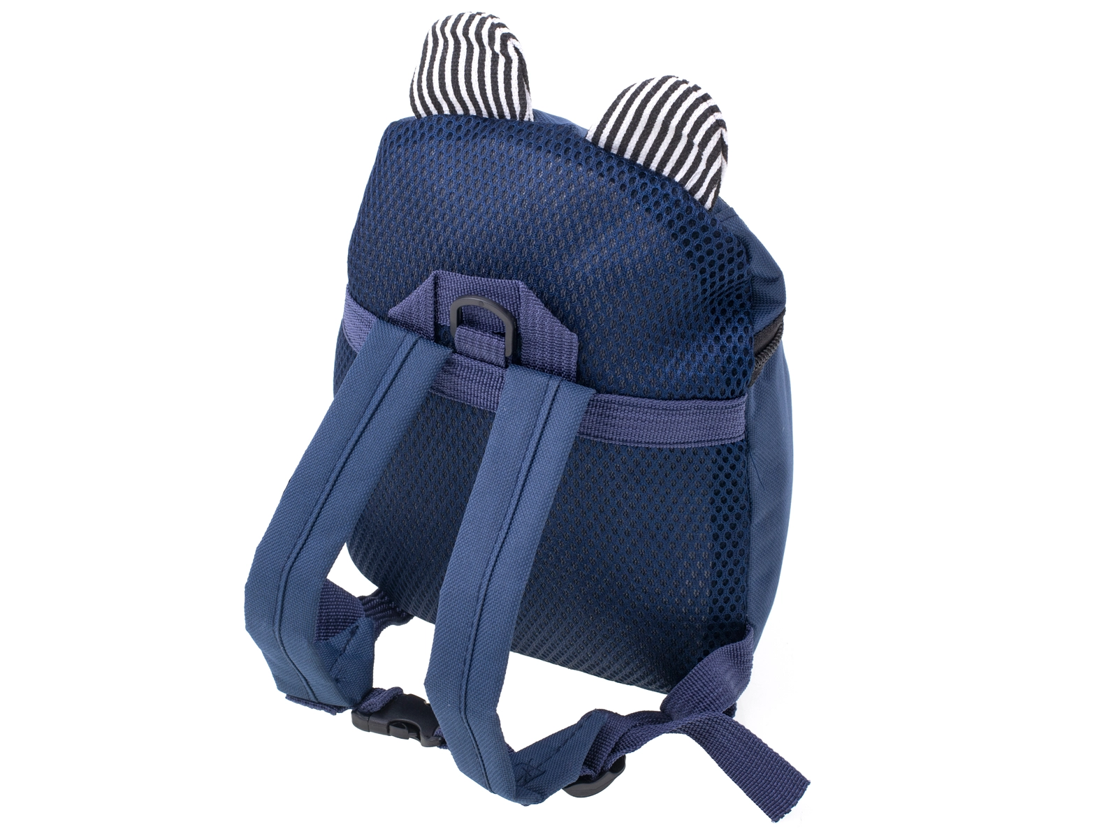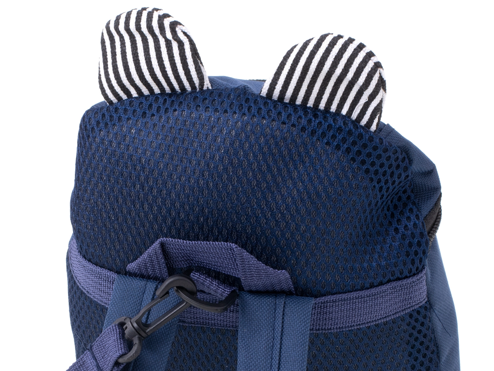 La llamativa parte frontal con hocico de osito y orejitas a rayas atrae a cualquier niño y convierte la mochila en su compañero favorito.