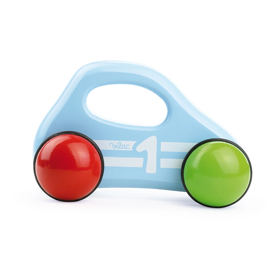 Regala a los niños sus primeras experiencias de carreras con el icónico cochecito de madera de VILAC. Su superficie ligera y suavemente lacada, la práctica empuñadura y las cuatro ruedas de colores engomadas garantizan un manejo cómodo incluso en suelos lisos. El cochecito es robusto, seguro e ideal para el juego diario.