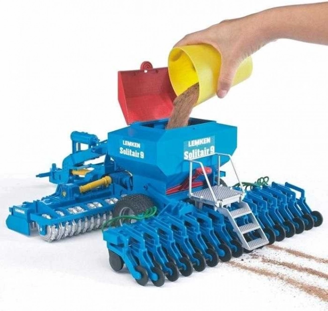 Modelo realista de la sembradora LEMKEN Solitair 9 a escala 1:16 de la marca Bruder, que ofrece numerosos detalles funcionales para un juego auténtico. Dispone de un depósito para semillas rellenable, brazo y escalera abatibles, discos móviles y un enganche giratorio de 180°. Es compatible con tractores Bruder de las series 20xx, 21xx y 30xx y está fabricado en plástico de alta calidad en Alemania.
