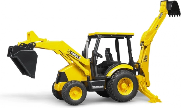 El Bruder tractor JCB MIDI es un modelo realista de cargadora multifuncional que ofrece gran estabilidad y excelentes funciones. Este juguete incluye una cuchara delantera con dos posiciones, de carga y de volcado, que puede cambiarse fácilmente. El brazo retroexcavador trasero se puede retirar y el asiento del conductor es giratorio, lo que aporta realismo y dinamismo al juego.
