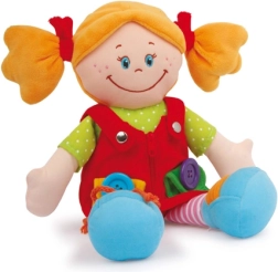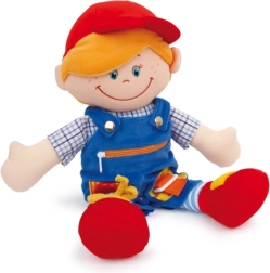 Las muñecas de tela Chiara y Massimo de la marca Small Foot están diseñadas para que los niños entrenen de forma natural el agarre, la coordinación ojo–mano y la paciencia. Sus coloridos conjuntos ofrecen elementos de vestimenta realistas —desde botones hasta velcros— que invitan a probar a abrochar y desabrochar. La tela suave y agradable y los rostros bordados garantizan un juego seguro incluso para los más pequeños.