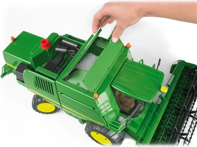 Esta cosechadora BRUDER, detallada al máximo y a escala 1:16, reproduce fielmente la John Deere T670i real. Gracias a sus piezas funcionales —desde la barra de corte giratoria y las ruedas traseras direccionales hasta las cubiertas superiores y laterales abatibles— los niños comprenderán los principios de una cosecha real y disfrutarán de horas de juego creativo.